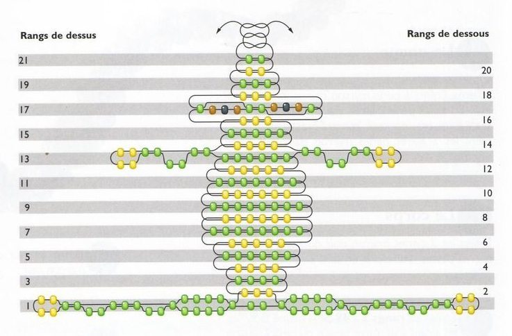 Друзья, на этот раз очень короткая схема плетения. Надеюсь, она будет вам полезна в плетении царевны-лягушки из бисера.