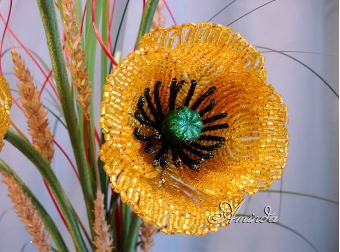Как видите в зависимости от расцветки, которую вы выберете могут получится визуально разные маки из бисера.