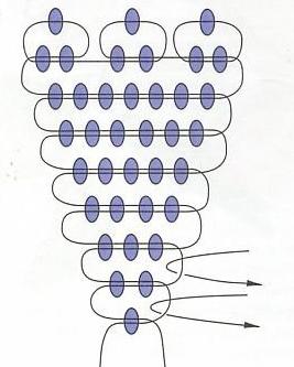 Следующий способ изготовления василька из бисера немного сложнее. Хотя, с какой стороны посмотреть. Параллельным плетением сделайте 7 лепестков, следуя схеме: