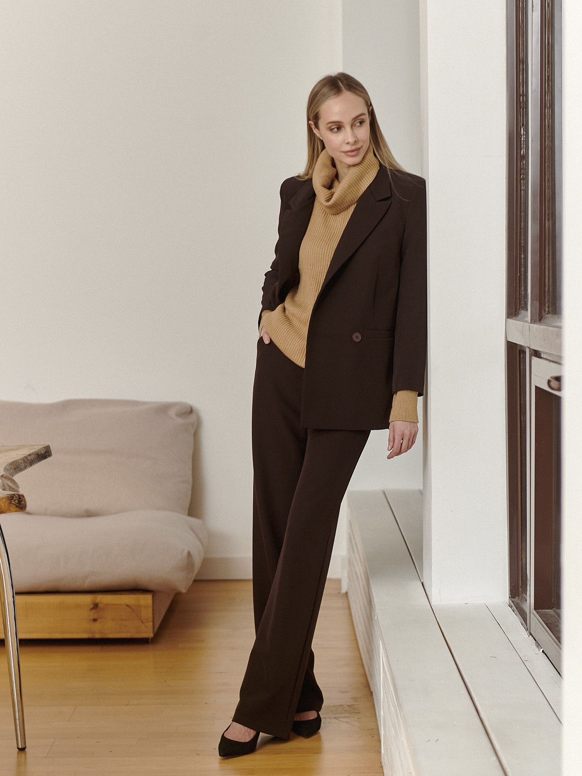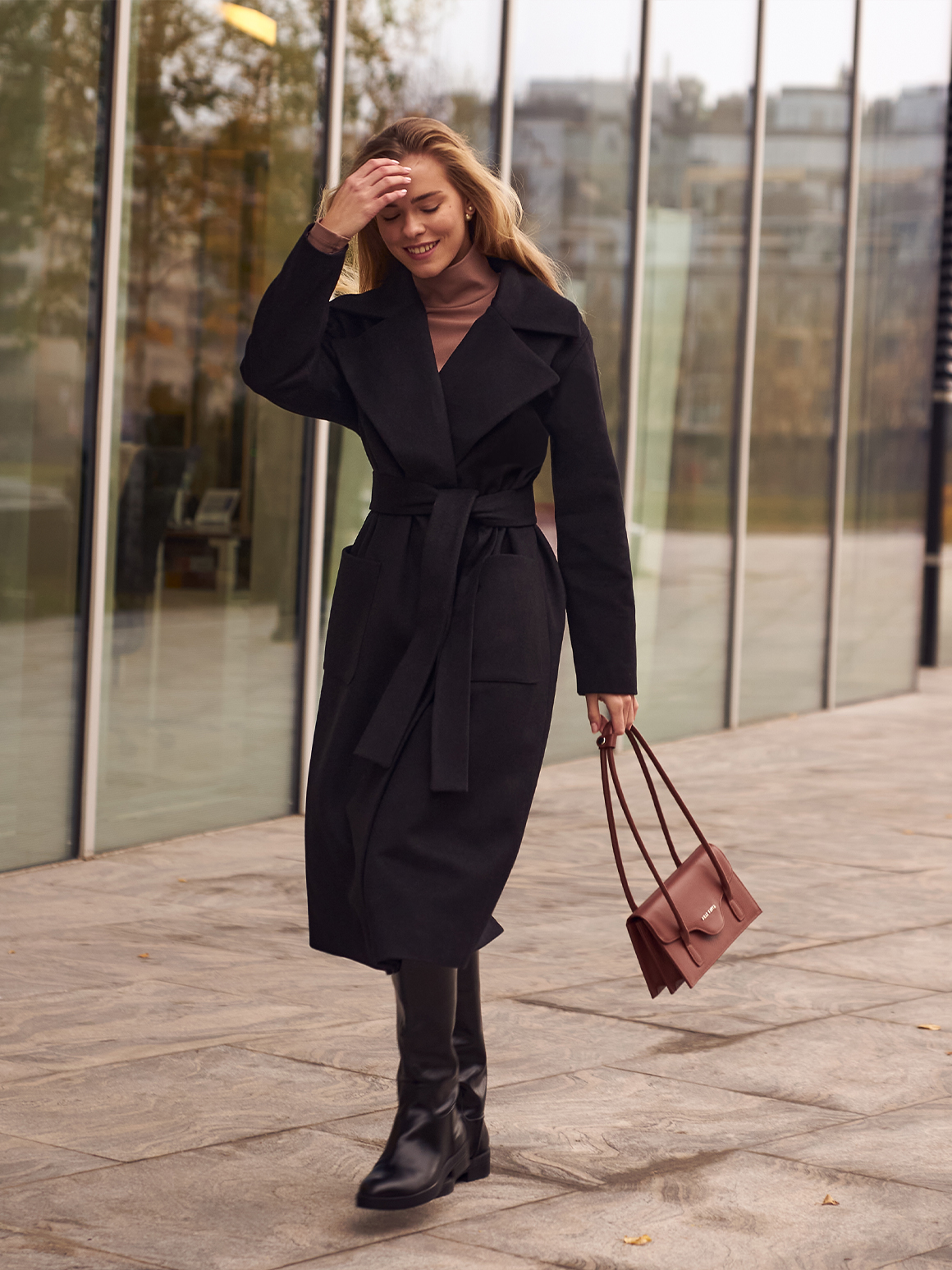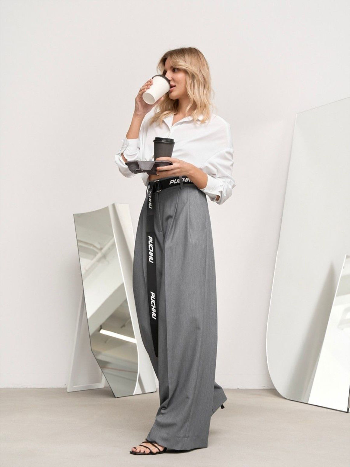 - Классика. В моду входит образ деловой женщины или бизнес-вумэн. На моде это отразилось появлением деловых брючных и юбочных костюмов свободного кроя с акцентными плечами на пиджаке. Особую популярность приобрели платья-пальто и сочетание брюк с высокой талией и классической прямой водолазкой.