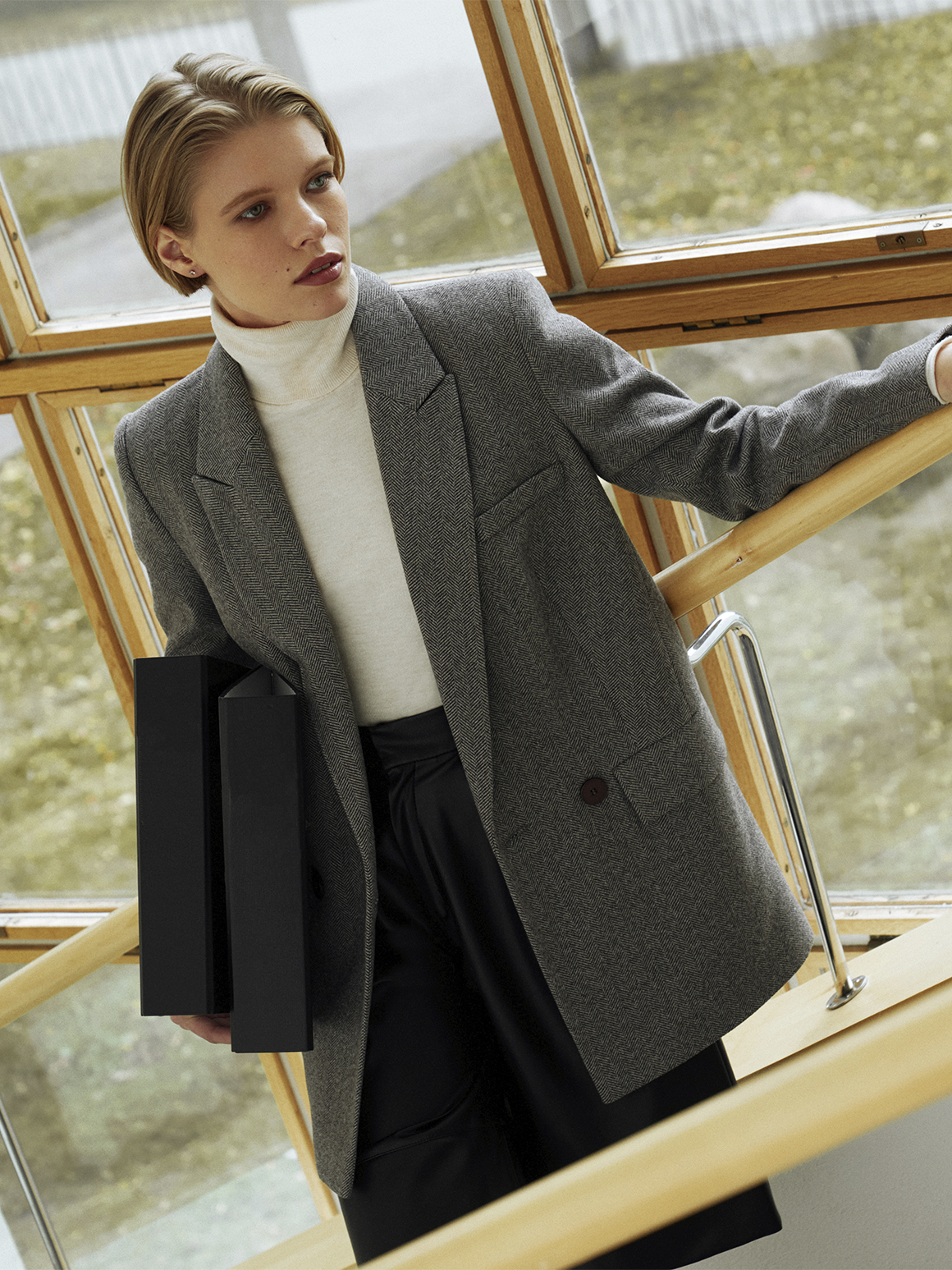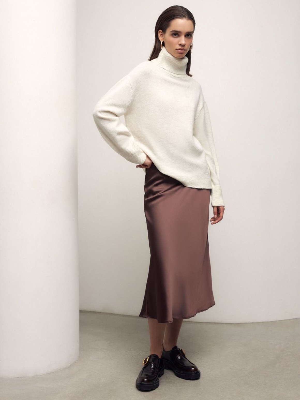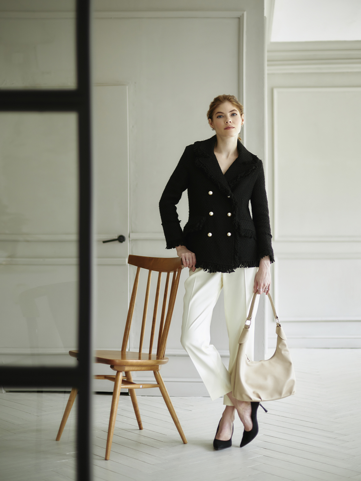 - Классика. В моду входит образ деловой женщины или бизнес-вумэн. На моде это отразилось появлением деловых брючных и юбочных костюмов свободного кроя с акцентными плечами на пиджаке. Особую популярность приобрели платья-пальто и сочетание брюк с высокой талией и классической прямой водолазкой.