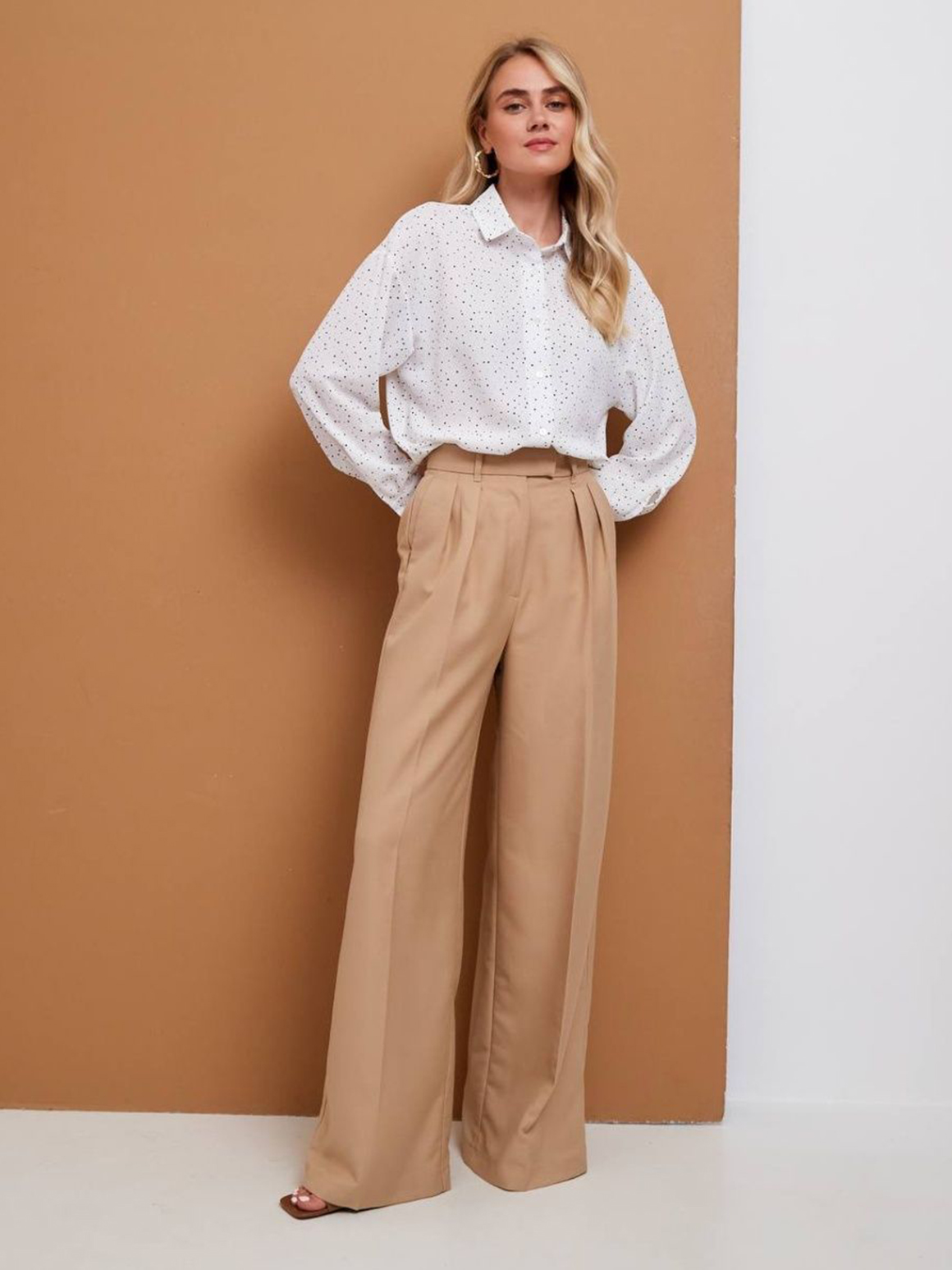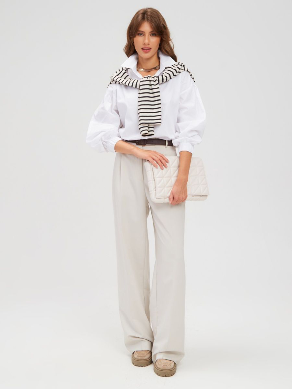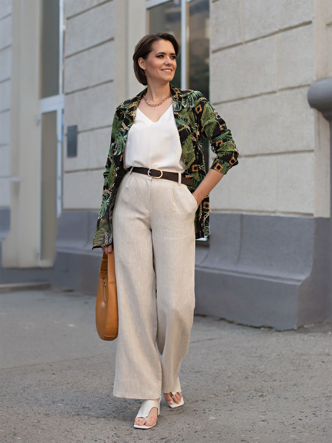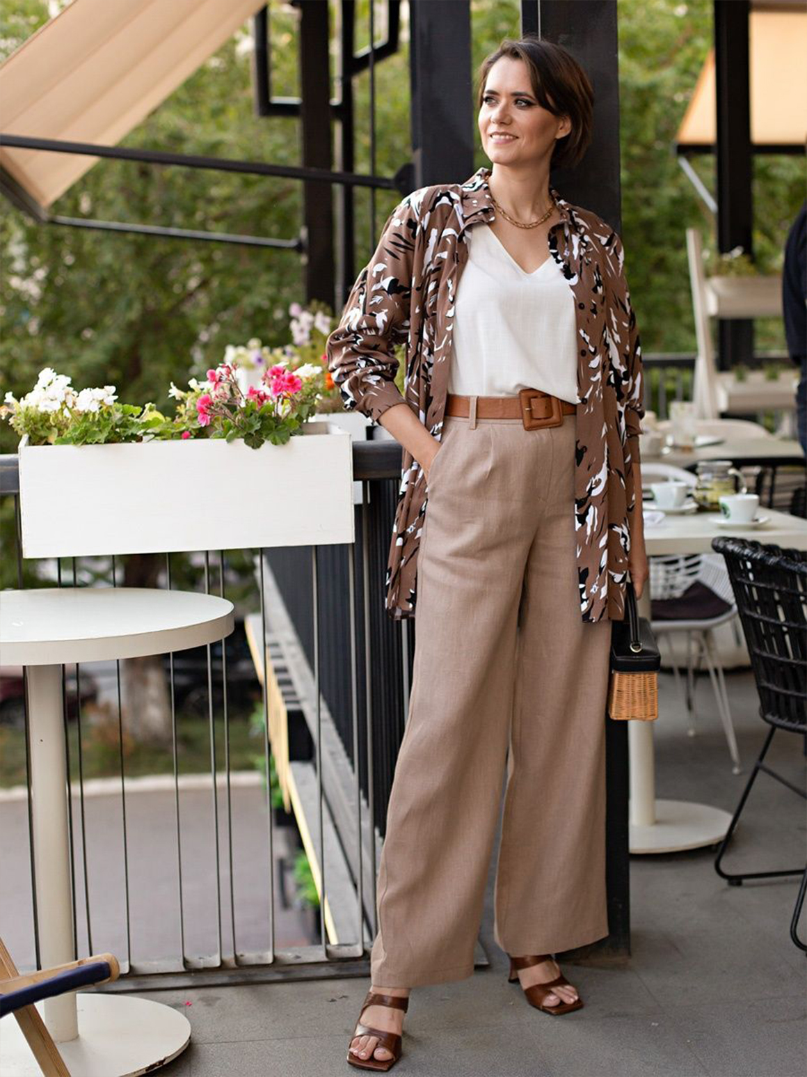 Женская одежда 80-х годов в моде уже не первый сезон. Создавать интересные сочетания можно из блуз с пышными рукавами, делающими плечи широкими. Возьмите блузку глубокого розового цвета и соедините ее с широкими брюками. Дополнить образ можно тоутом и туфлями-лодочками.