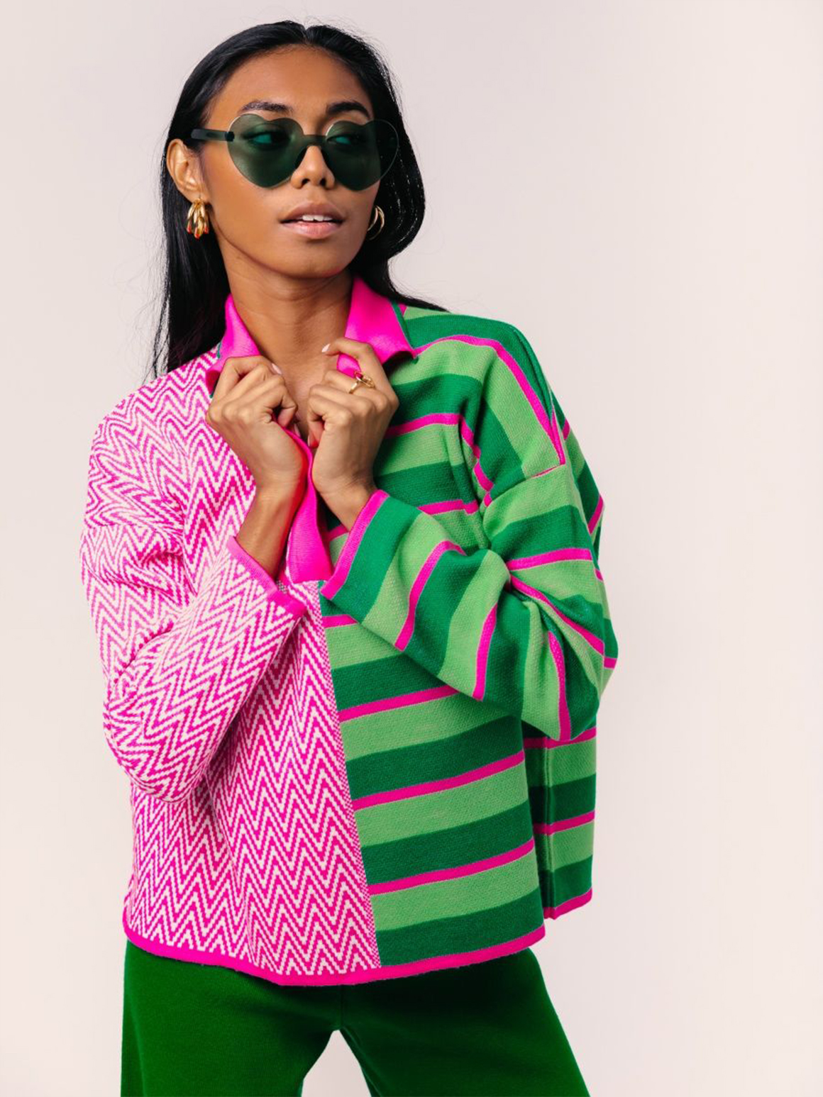 - Спорт-шик. Зарождение этого стиля пришлось на 80-е года, когда спортивную одежду стали надевать не только в пределах спортзалов. Розовые, кислотно-зеленые и фиолетовые повязки на голову, яркие лосины в тон повязке, топы с полосками или в горох — таким цветастым образом в спортивном стиле в то время никого не удивишь.
