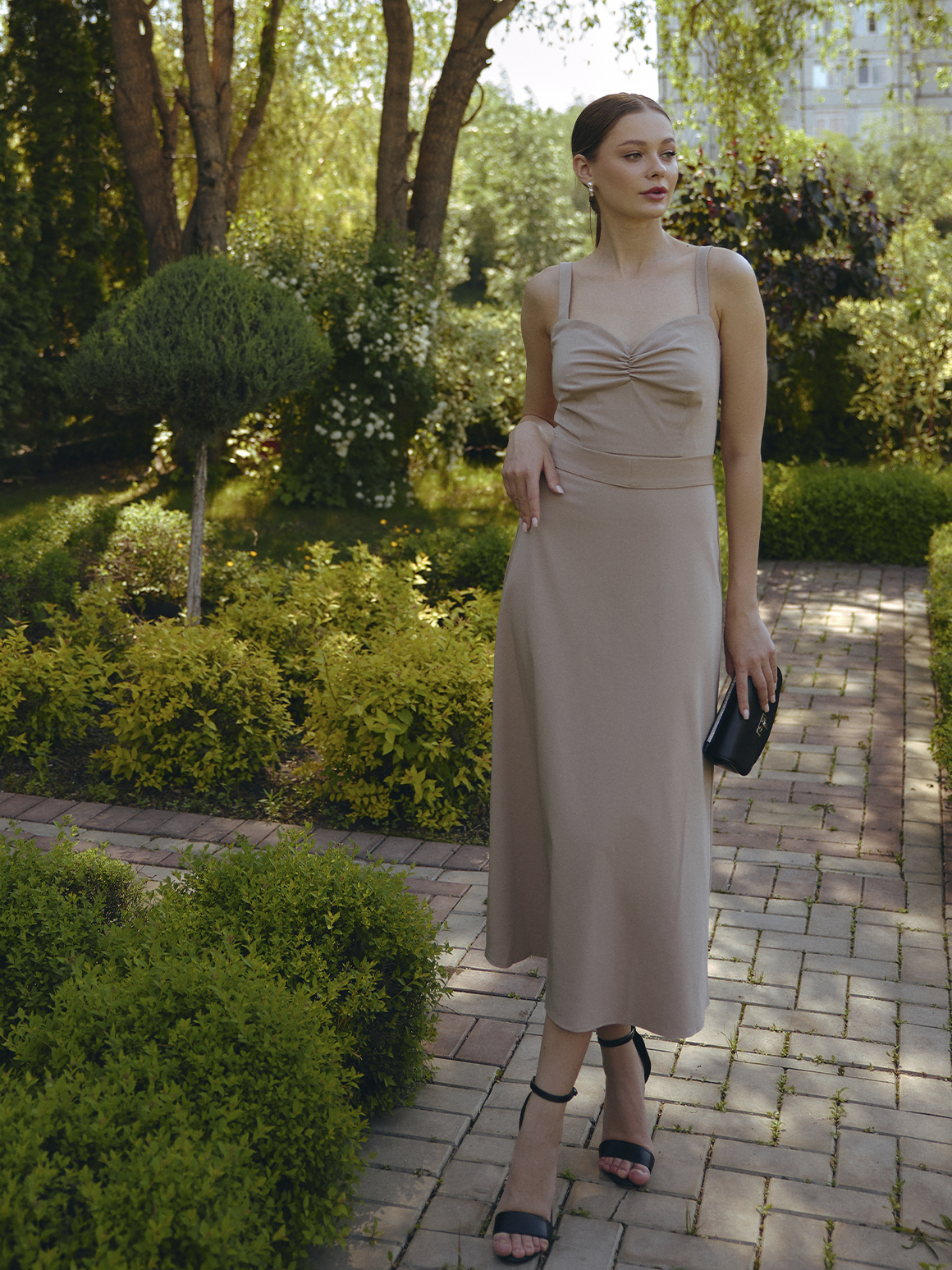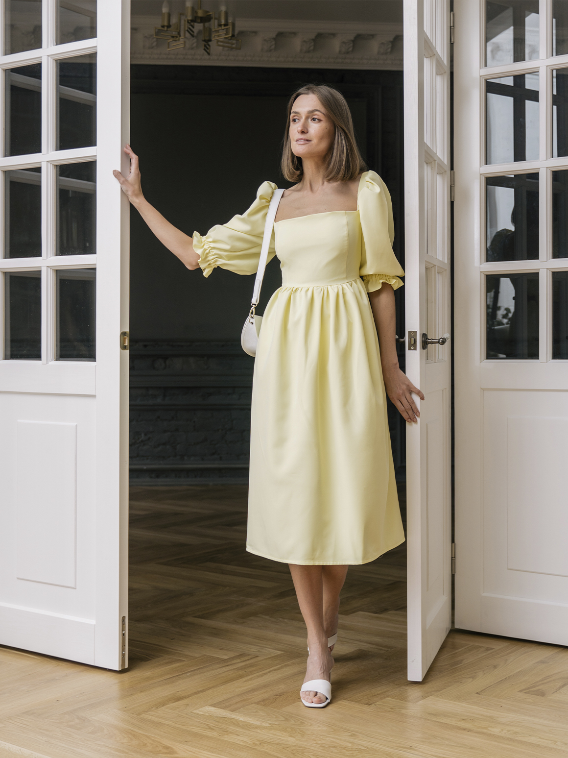 Для романтичных аутфитов как у леди Ди наденьте платье из легкой ткани молочного цвета. В этом нежном платье сходите на свидание или на вечернее мероприятие. Дополните платье туфлями в цвет и микросумкой в пастельных оттенках.